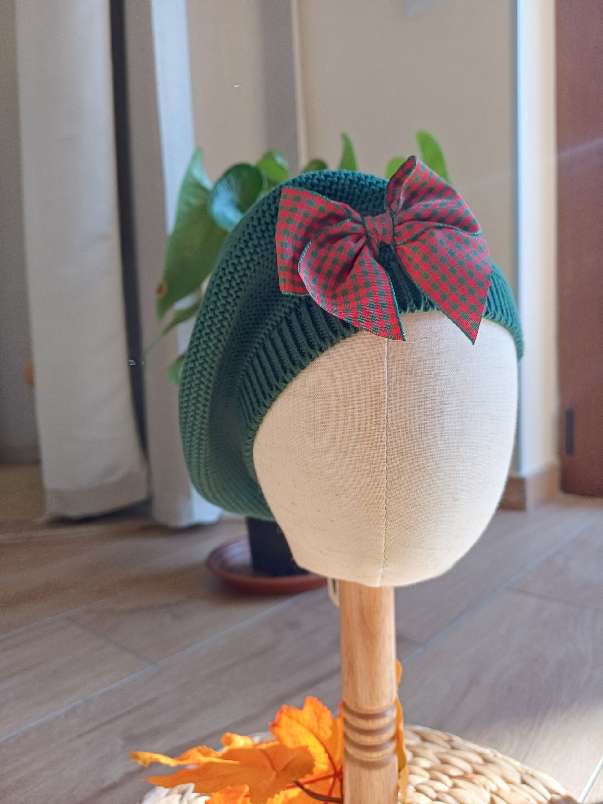 Basco in caldo cotone verde, morbido e confortevole, ideale per le giornate fredde. Decorato con un grazioso fiocco rosso a quadretti verdi, aggiunge un tocco elegante e festoso al look della bambina.