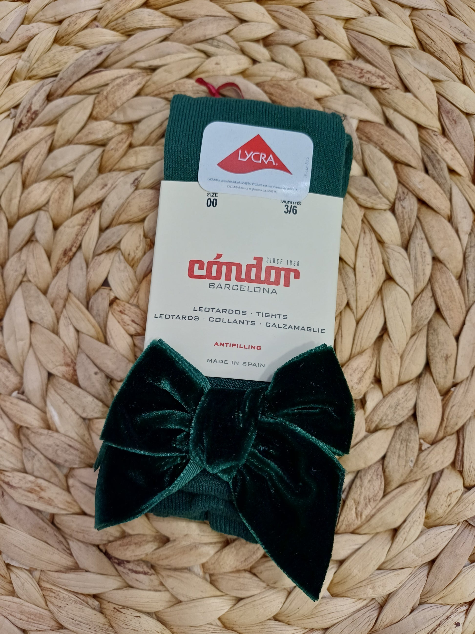 Calze collant colore verde, impreziosite da delicati fiocchi in velluto tono su tono. Morbide ed eleganti, aggiungono un raffinato tocco di femminilità e ricercatezza. Perfette per occasioni speciali o look quotidiani sofisticati, garantiscono comfort e stile con un’eleganza discreta e senza tempo.
