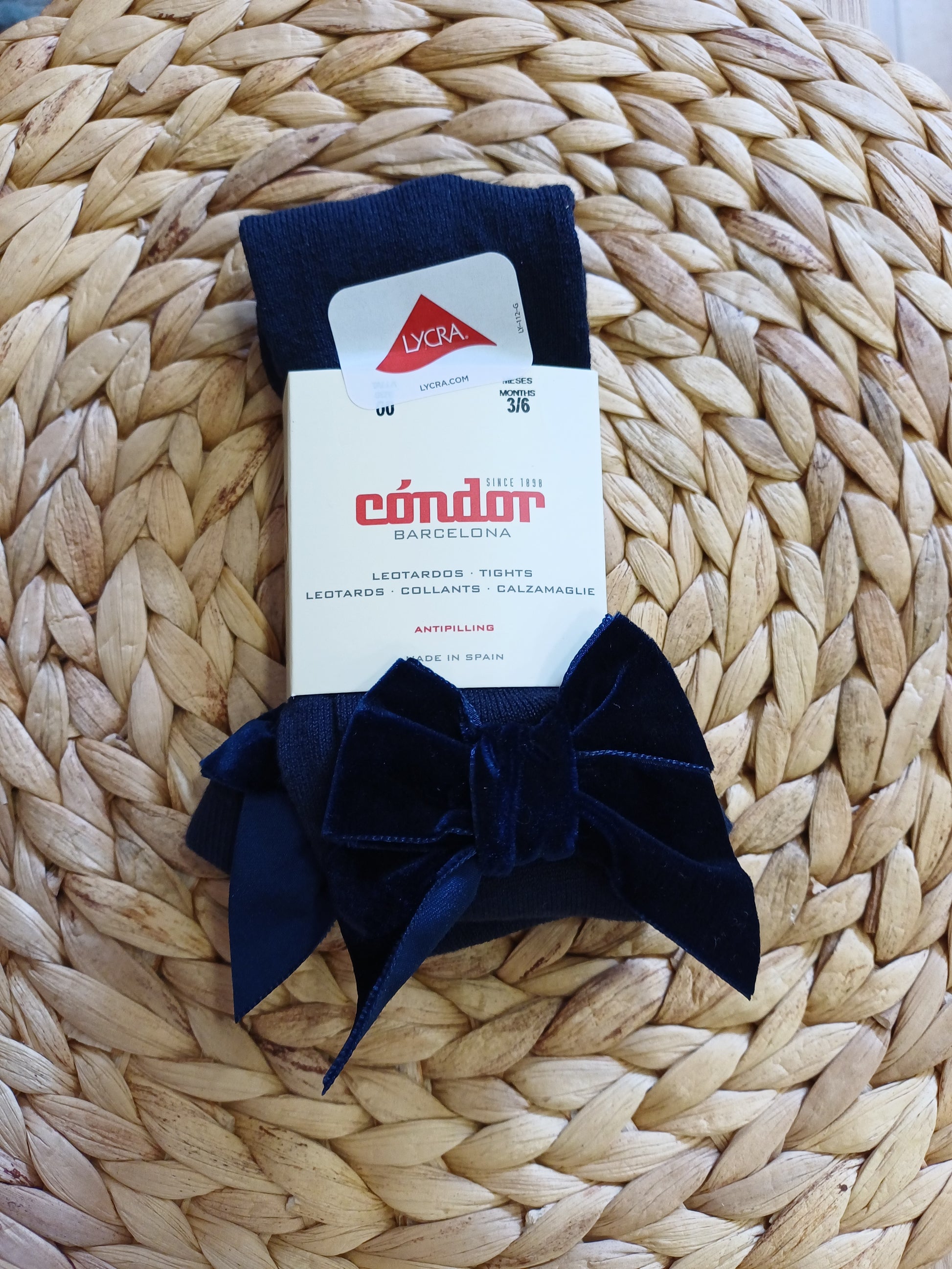 Calze collant colore blu , impreziosite da delicati fiocchi in velluto tono su tono. Morbide ed eleganti, aggiungono un raffinato tocco di femminilità e ricercatezza. Perfette per occasioni speciali o look quotidiani sofisticati, garantiscono comfort e stile con un’eleganza discreta e senza tempo.