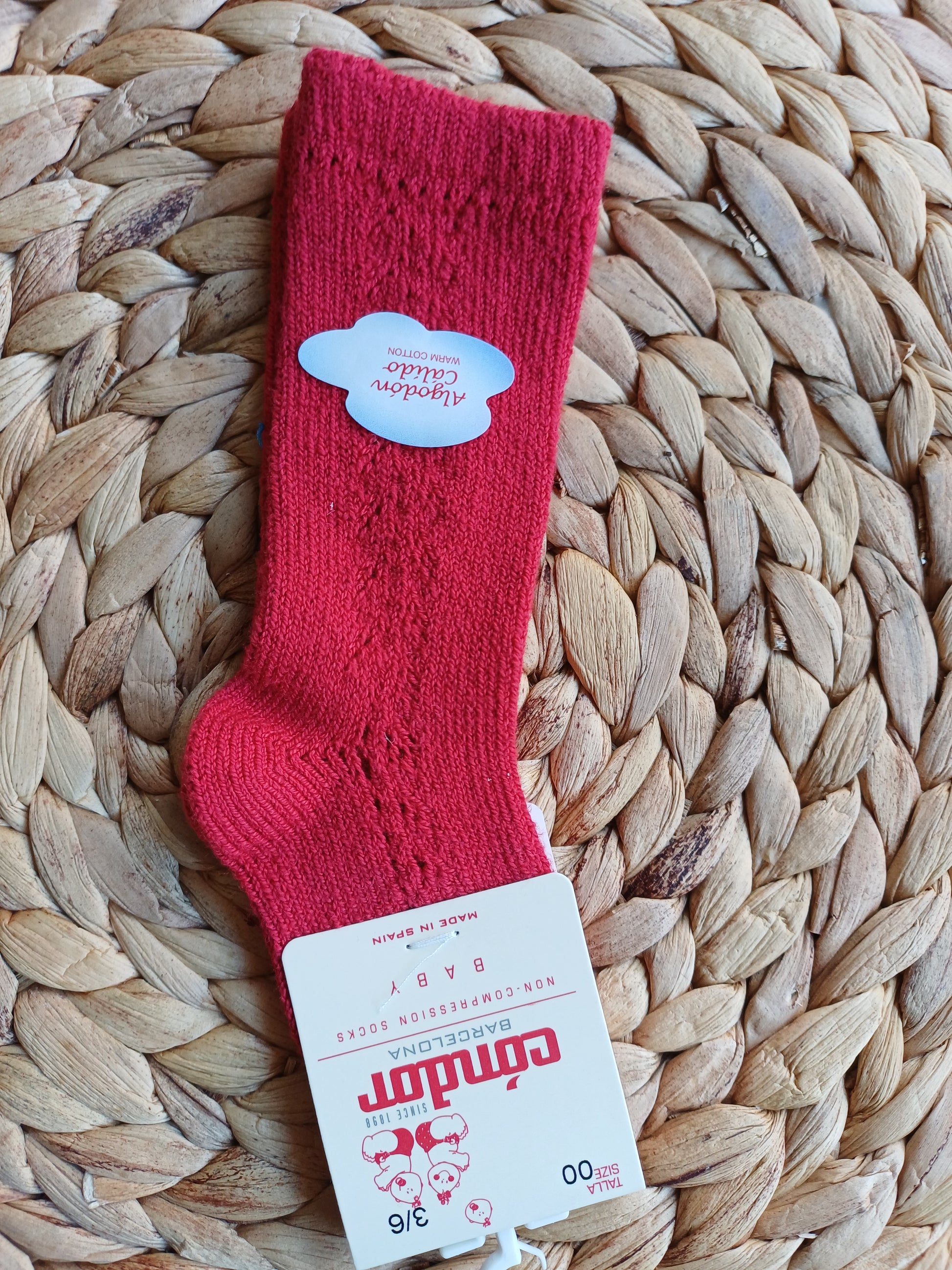 Calzino lungo rosso con elegante traforo centrale che percorre tutta la lunghezza. Realizzato in filato morbido e traspirante, offre comfort e raffinatezza. Perfetto per look classici o ricercati, aggiunge un delicato tocco decorativo mantenendo uno stile sobrio e curato.