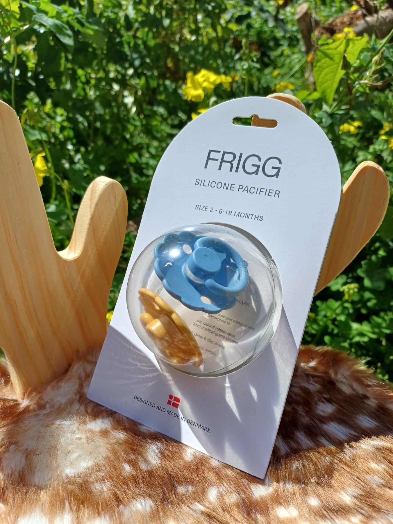 Set di 2 ciucci a forma di fiore in silicone, nei colori giallo ocra e azzurro. Taglia 6-18 mesi, pensati per il comfort e la sicurezza del bambino. Morbidi, resistenti e dal design naturale, ideali per accompagnare la crescita con stile e dolcezza.
