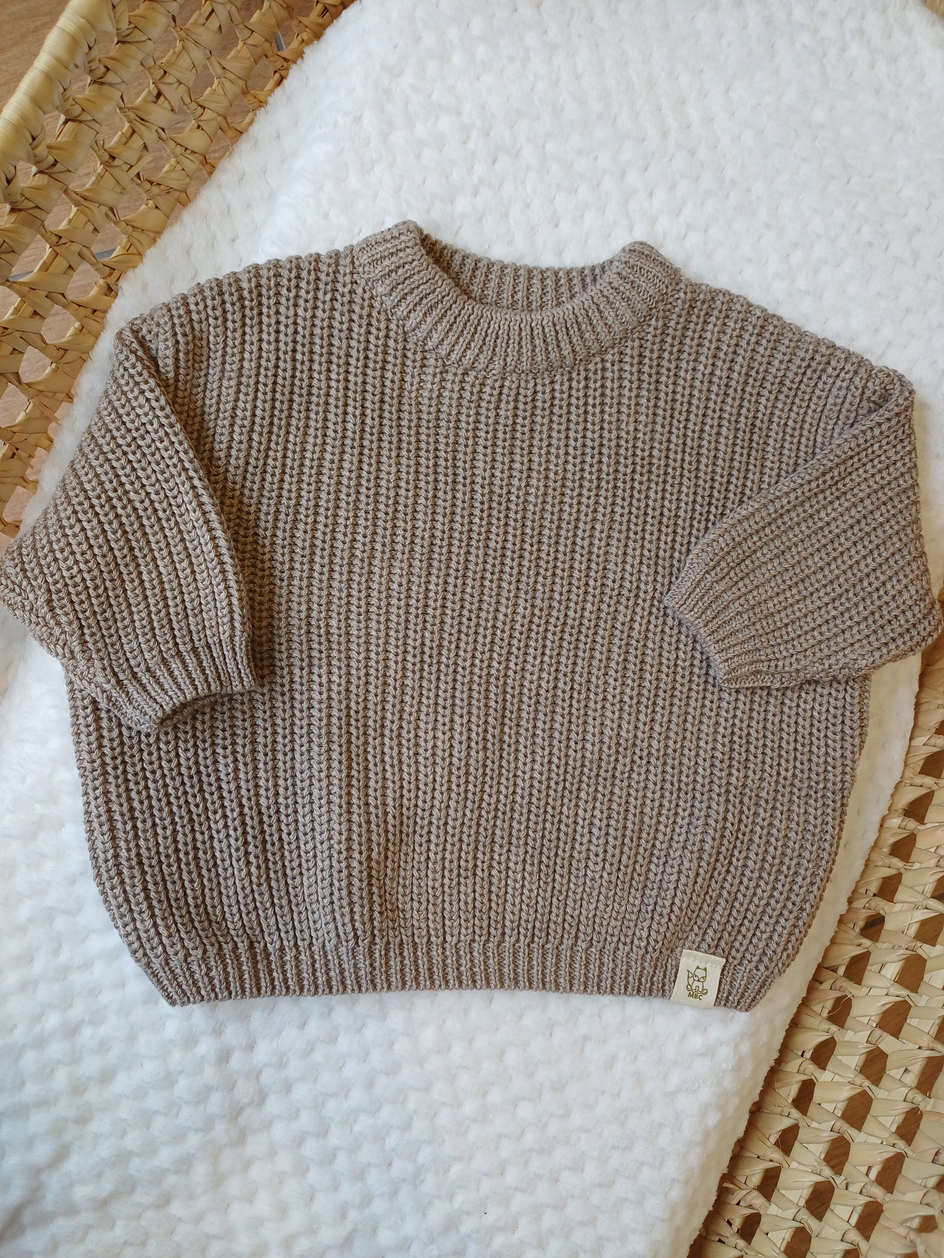 Maglioncino in caldo cotone color tortora, morbido e confortevole sulla pelle. Dallo stile semplice ed elegante, è ideale per le giornate più fresche. Perfetto da abbinare a completini o tutine, offre calore e raffinatezza, mantenendo un look delicato e senza tempo per il neonato.