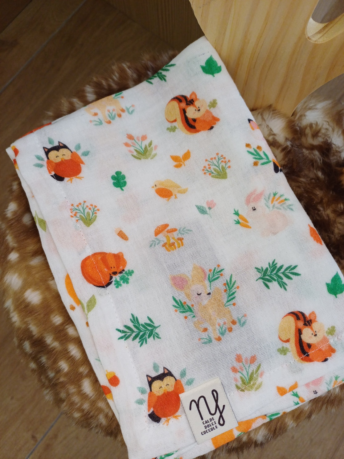 Mussole in cotone traspirante con fantasie vivaci, ideali per avvolgere delicatamente i neonati. Tessuto morbido e ipoallergenico che garantisce comfort e protezione sulla pelle sensibile del bambino.
