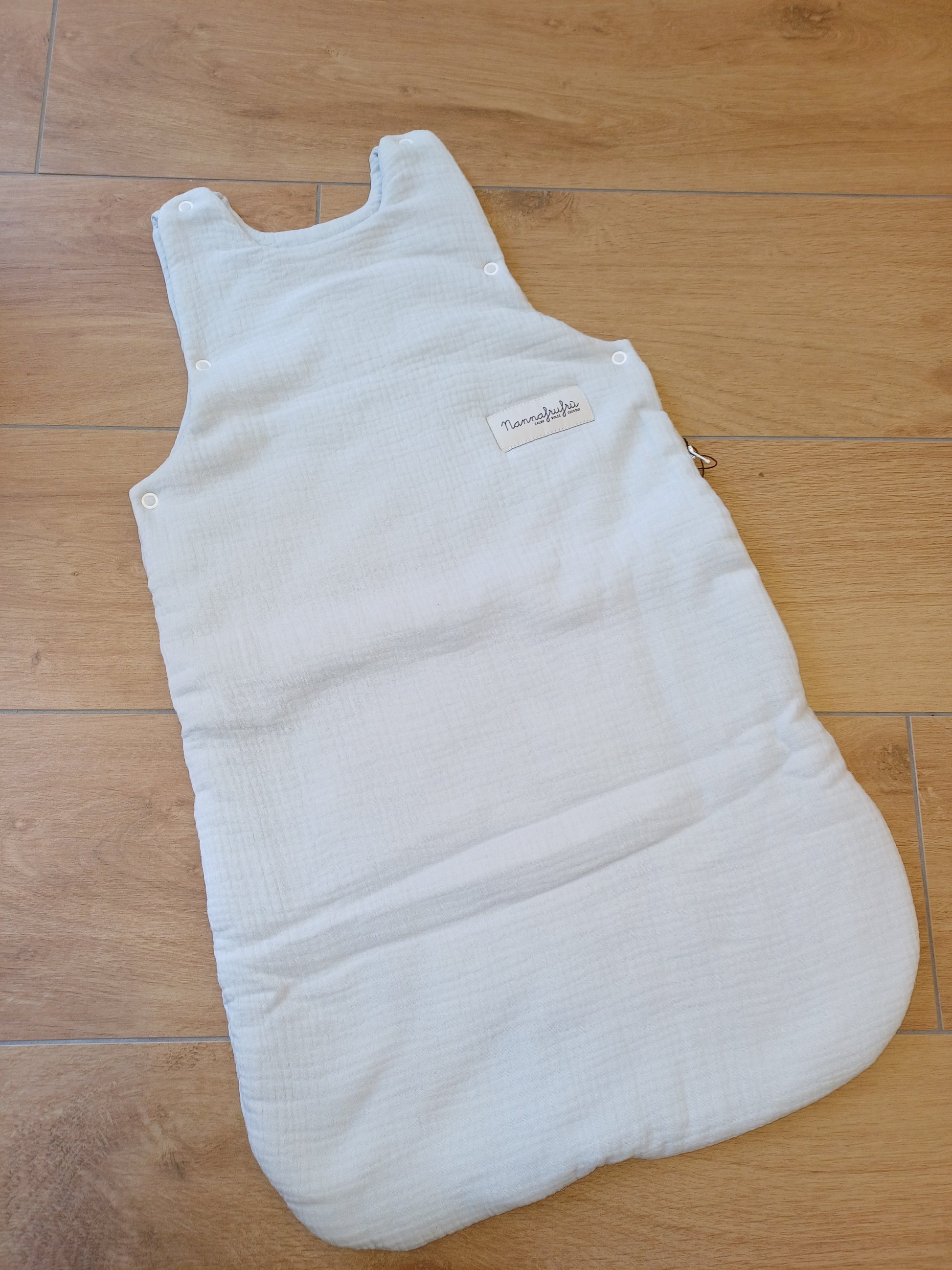 Sacco nanna azzurro in cotone con imbottitura calda, perfetto per l’inverno. Morbido e traspirante, garantisce comfort e temperatura costante durante la notte. Dotato di pratica chiusura con zip, avvolge il bambino in sicurezza favorendo un sonno sereno. Adatto a culle e lettini.