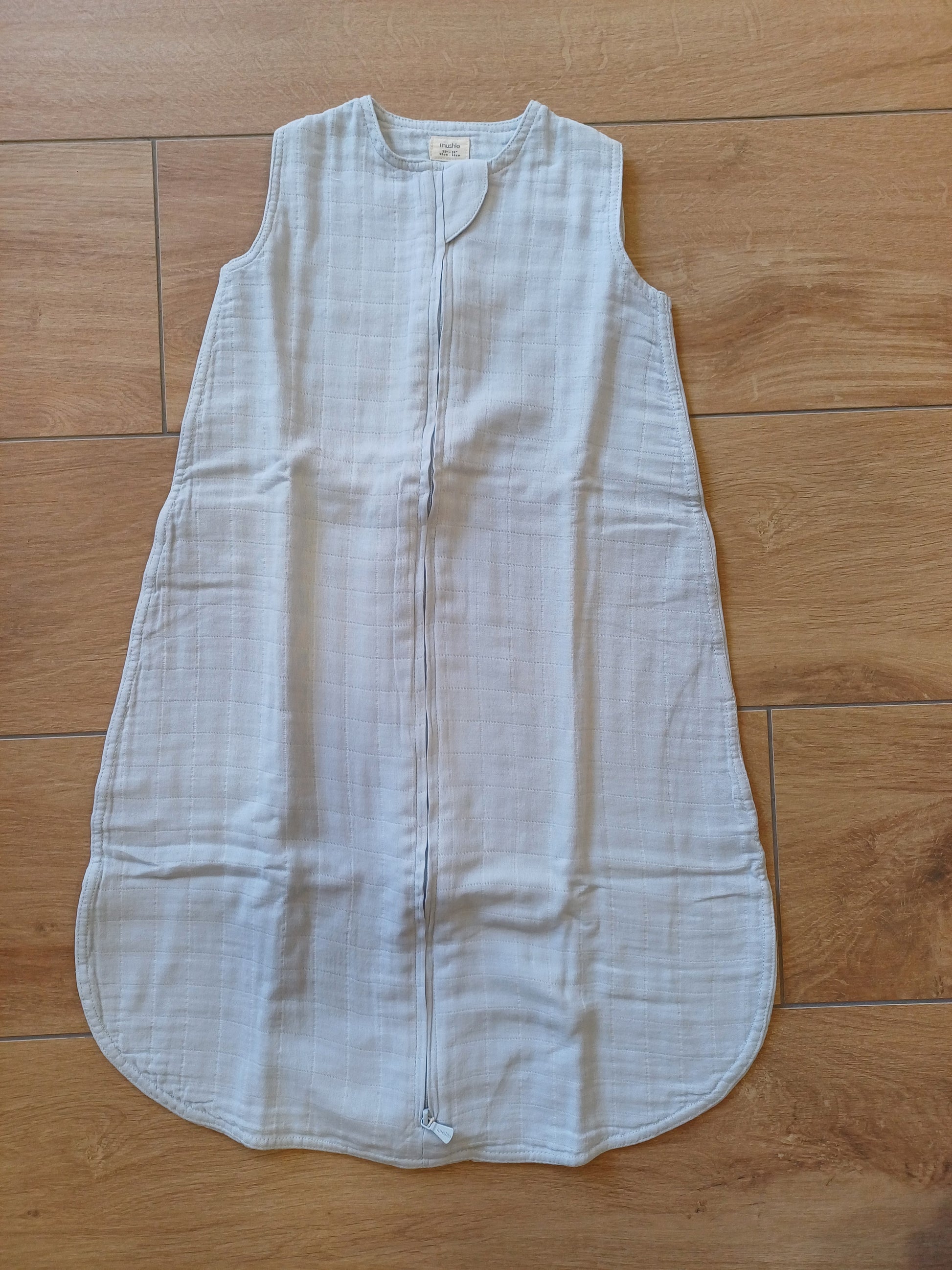 Sacco nanna in mussola garzata, leggero e traspirante, perfetto per le mezze stagioni. Dotato di cerniera centrale con protezione in tessuto per il collo. Senza maniche, comodo e pratico. Colore celeste, ideale per maschietti o neutro. Morbido al tatto, garantisce sonni sereni.