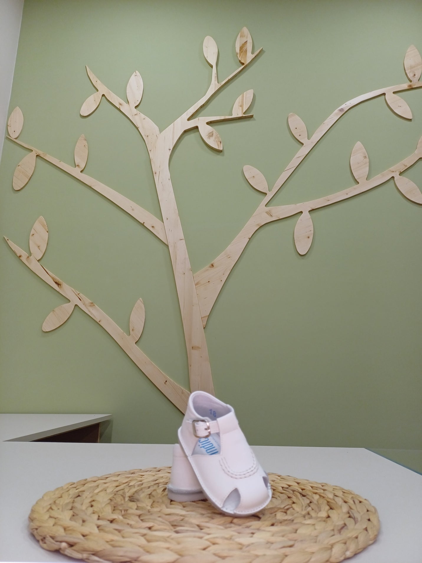 Sandalo primi passi in pelle bianca, con chiusura a fibbia regolabile, punta aperta e suola flessibile. Ideale per i primi passi, garantisce comfort, traspirazione e sostegno ottimale.